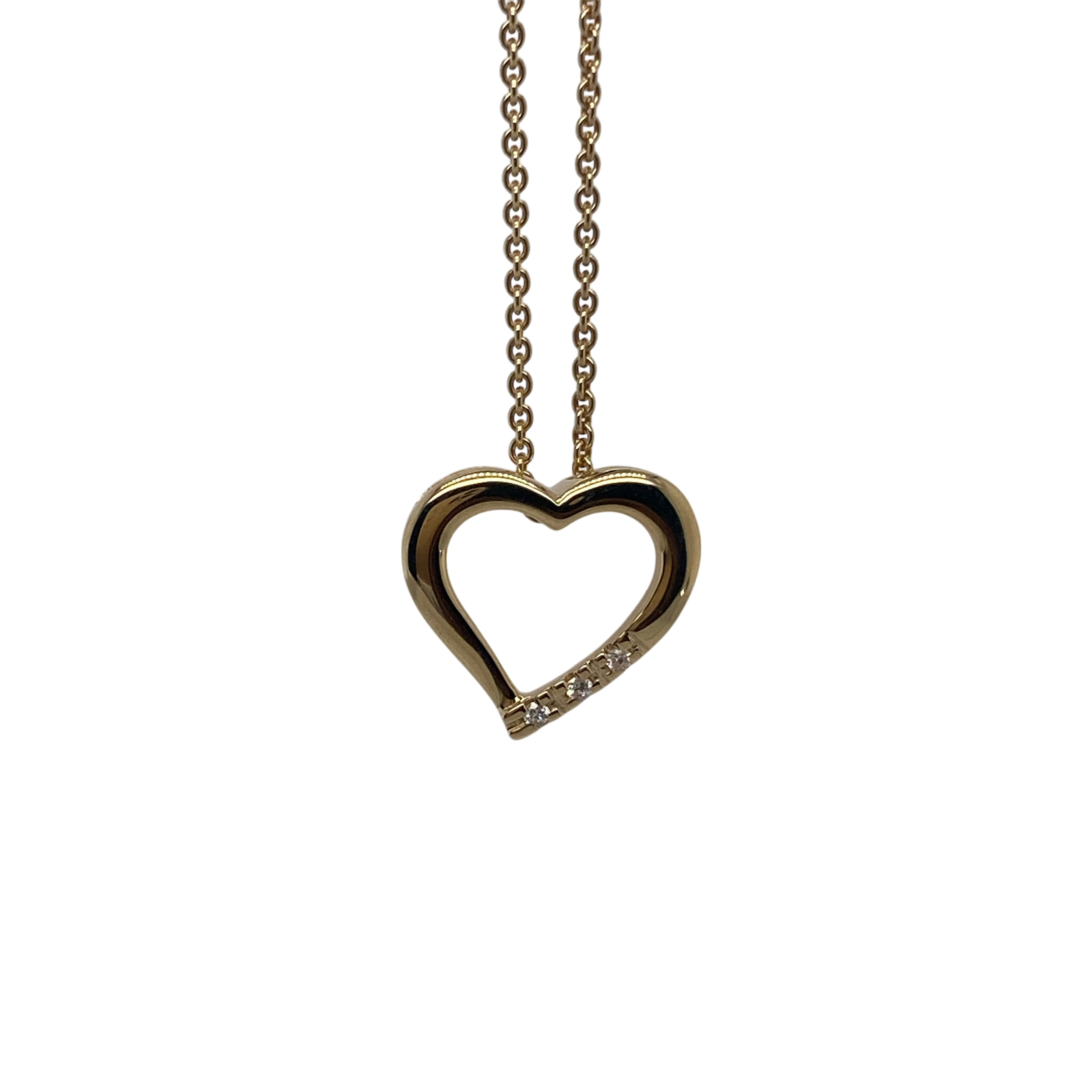 Smuk og enkel hjerte vedhæng i 14kt guld med i alt 0,02ct w/si – inkl. forgyldtsølv kæde.