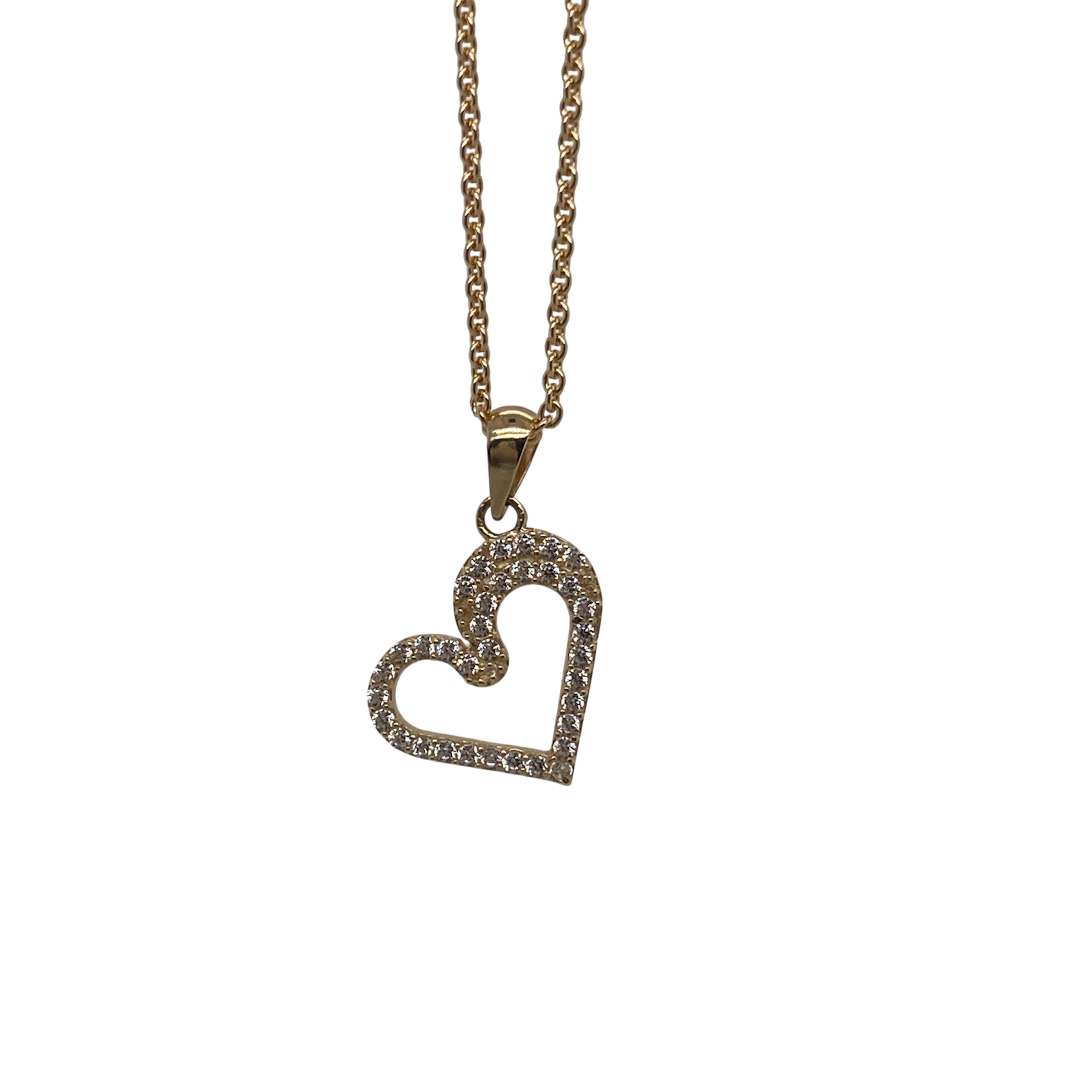 Smuk og enkel hjerte vedhæng i 8kt guld med zir – inkl. forgyldtsølv kæde.