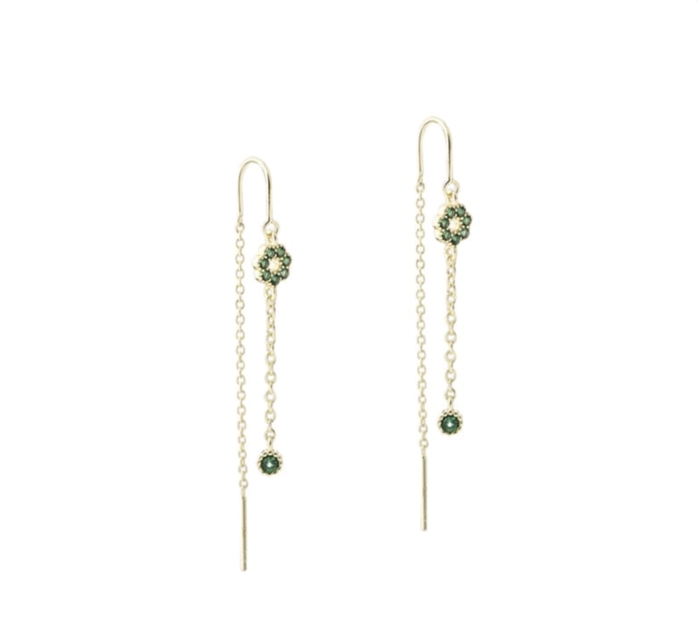 Ørekæder i sølv forgyldt med grønne zirkonia