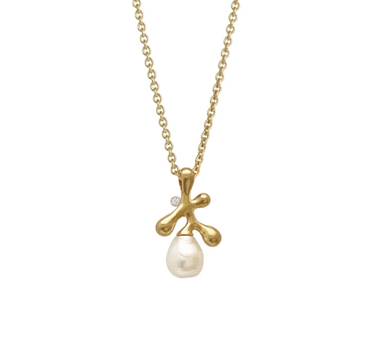 Smukt FLOREA vedhæng med barok perle og 0,02 ct diamant