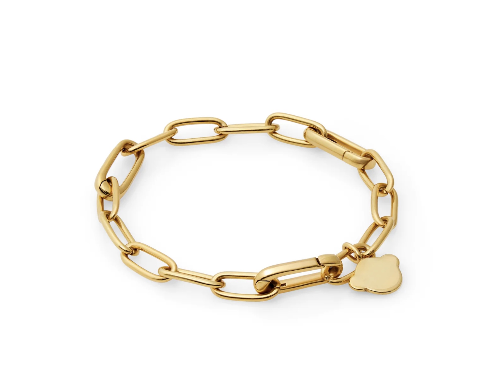 Kay Bojesen armbånd i massiv Sterling sølv med 18 karat forgyldning. Består af tre led der kan åbnes og vedhængene kan klikkes derpå
