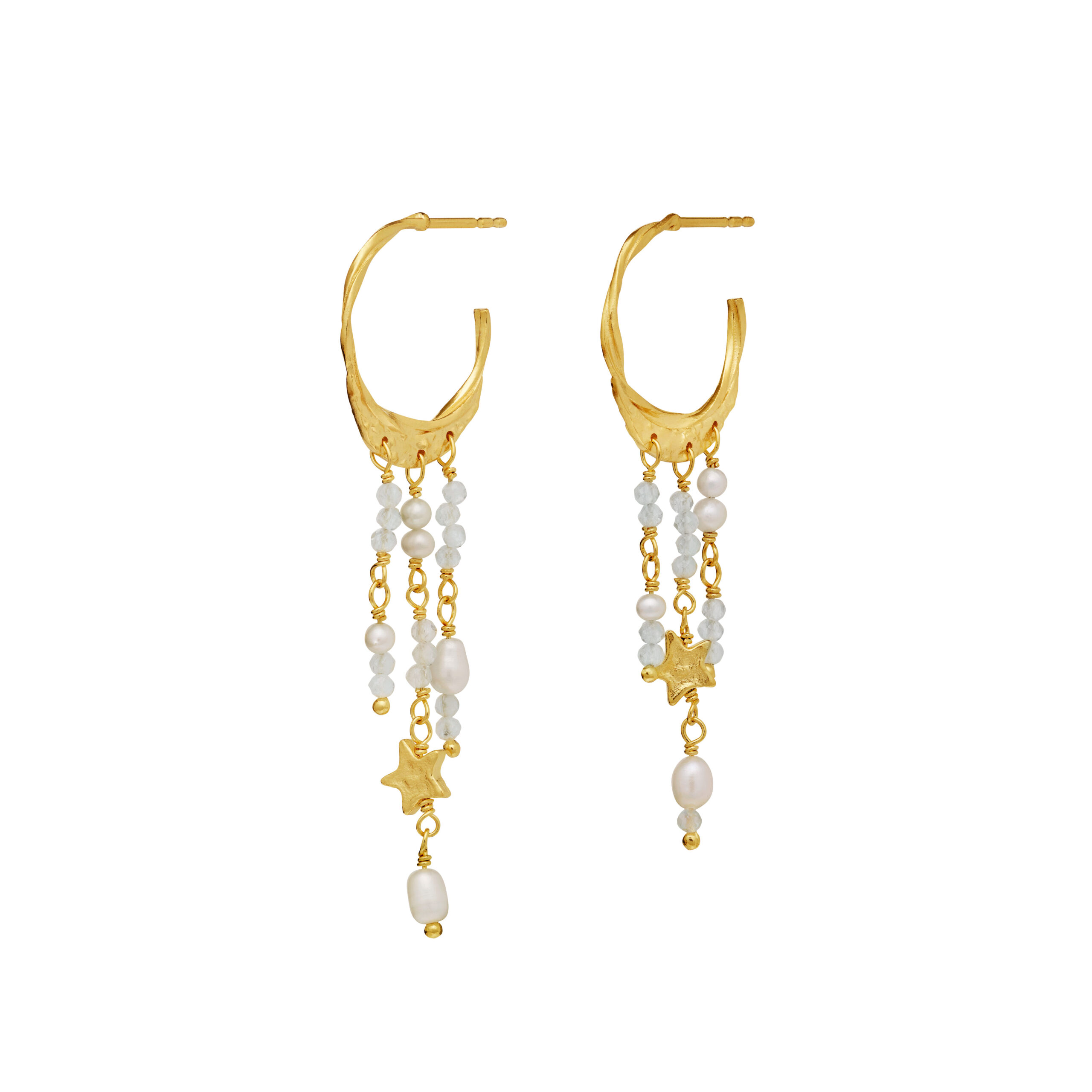 Helem øreringe i forgyldt sølv fra Maanesten. Øreringe med perler, som giver flot fylde på øret. De kan bruges til hverdag, eller til festlige anledninger.