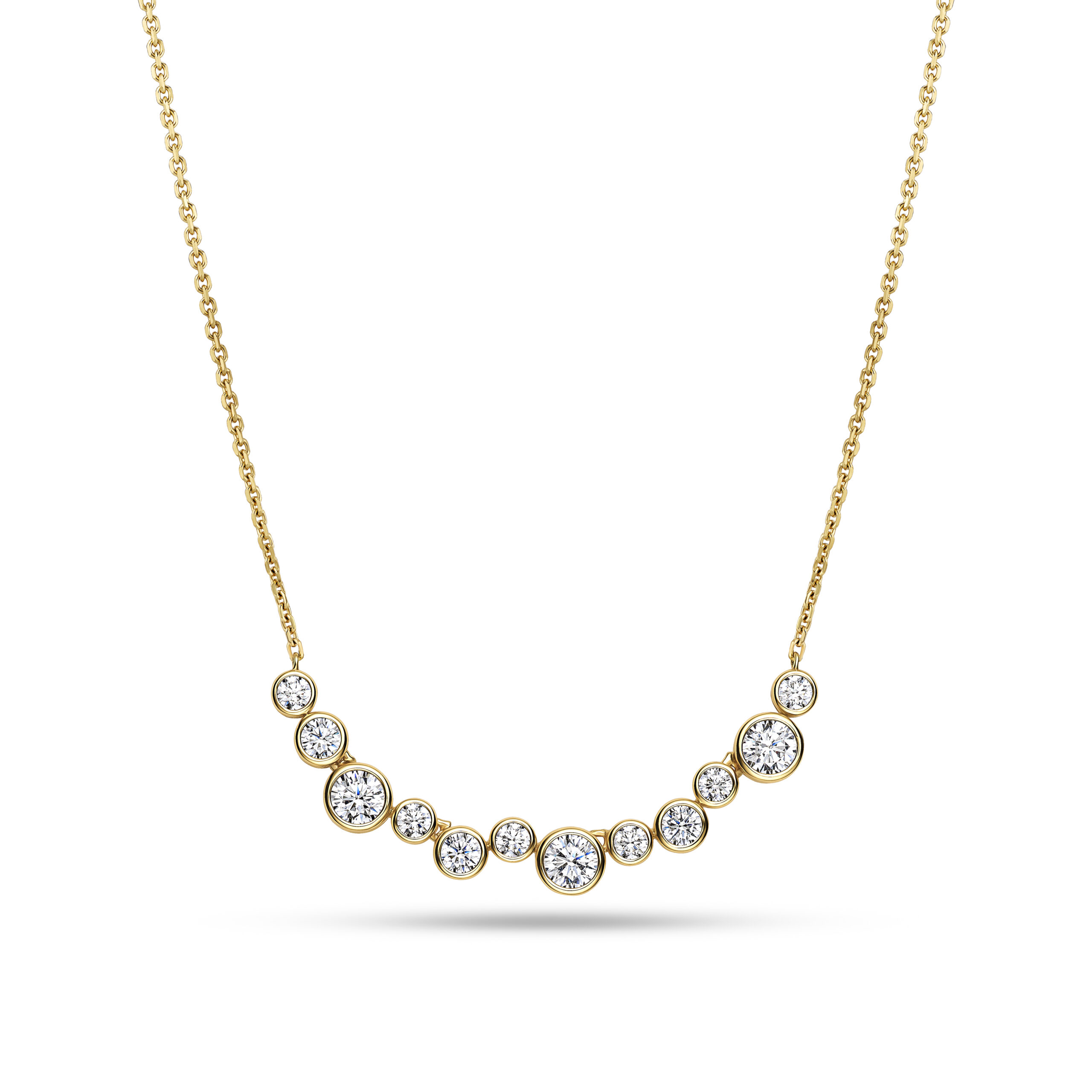 Halskæde af 18 karat forgyldt 925 sterlingsølv, med en poleret overflade og håndsatte facetslebne hvide zirkonia.