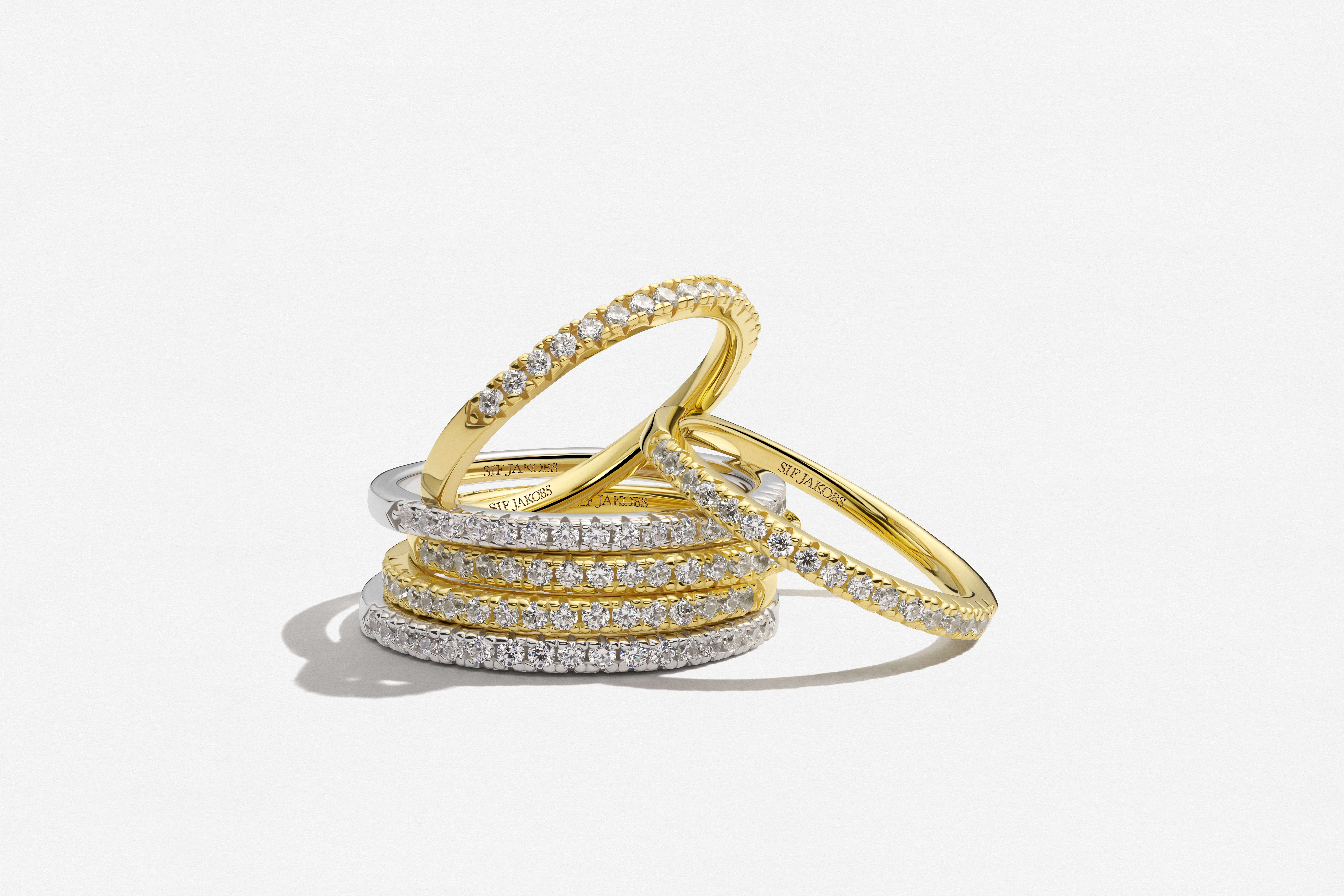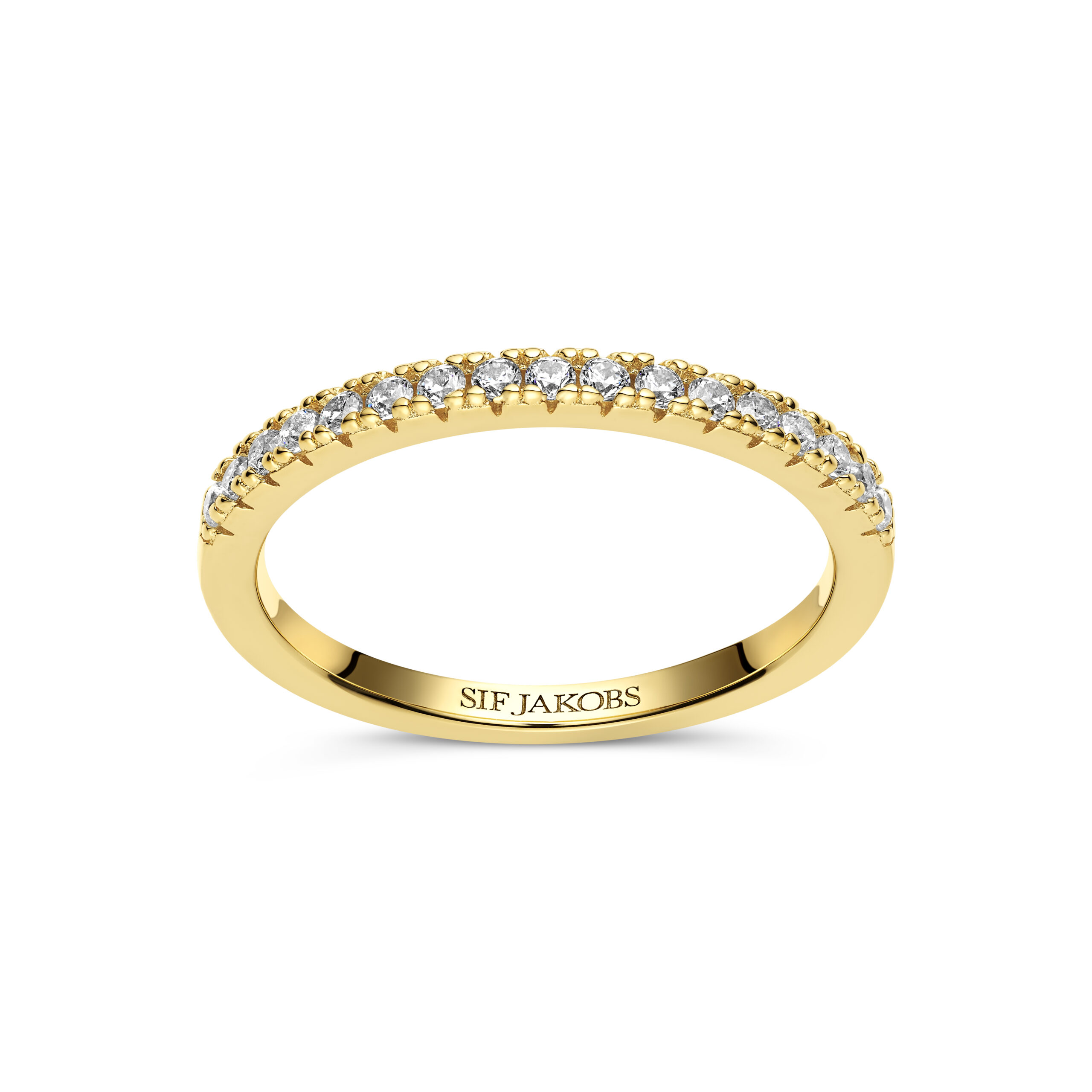 Ring i sterlingsølv 925 forgyldt med 18 karat guld med blankpoleret overflade og facetslebne hvide zirkoner.