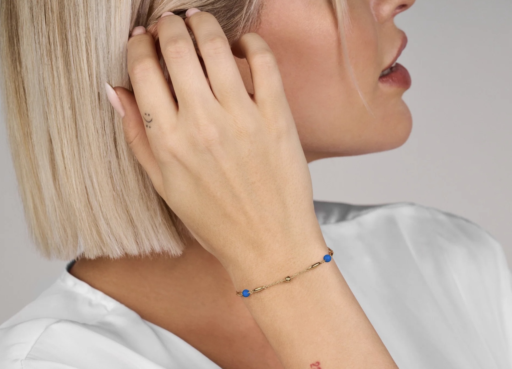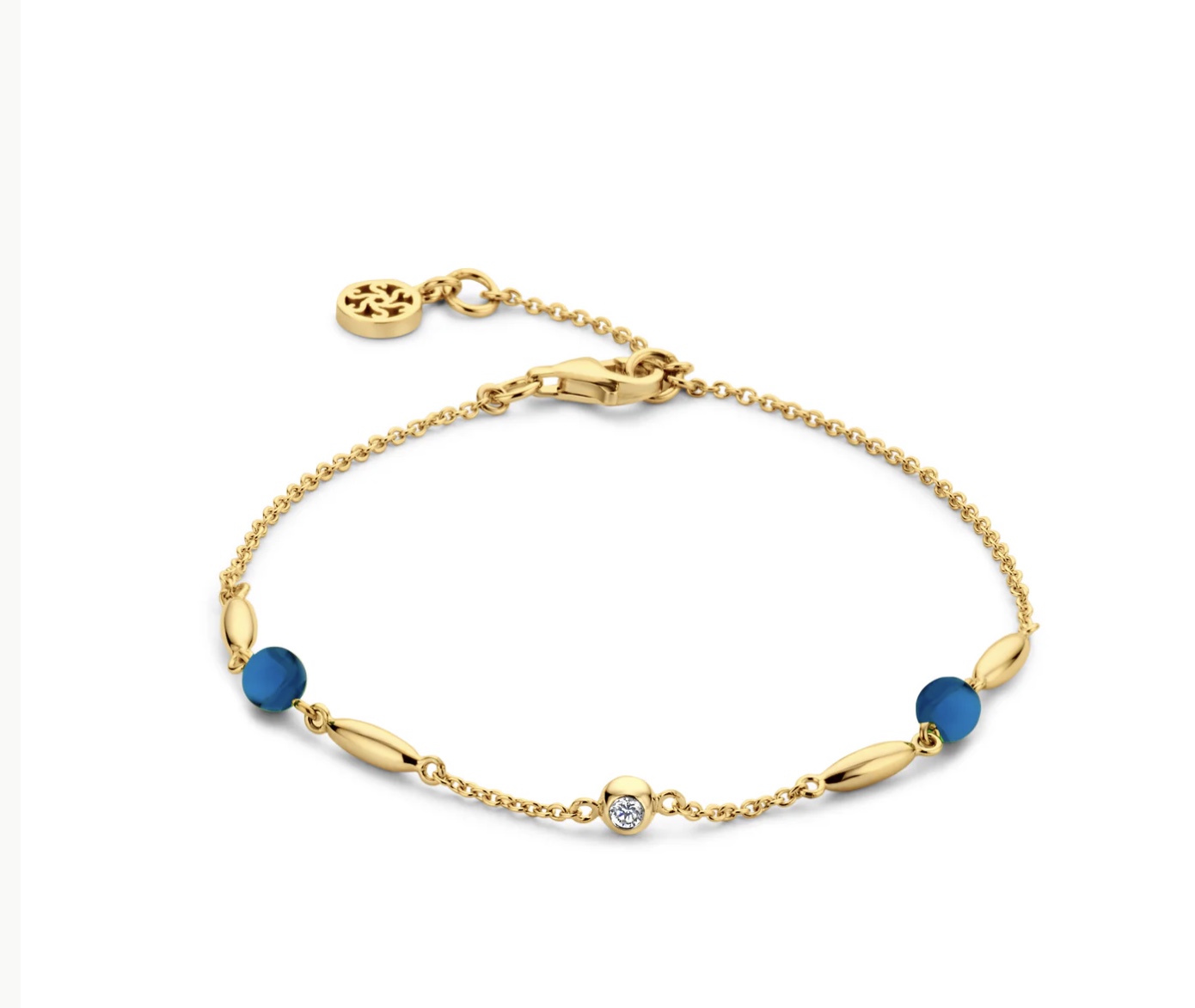 Cornelia armbånd i sølv forgyldt med blå agater og zirkonia.