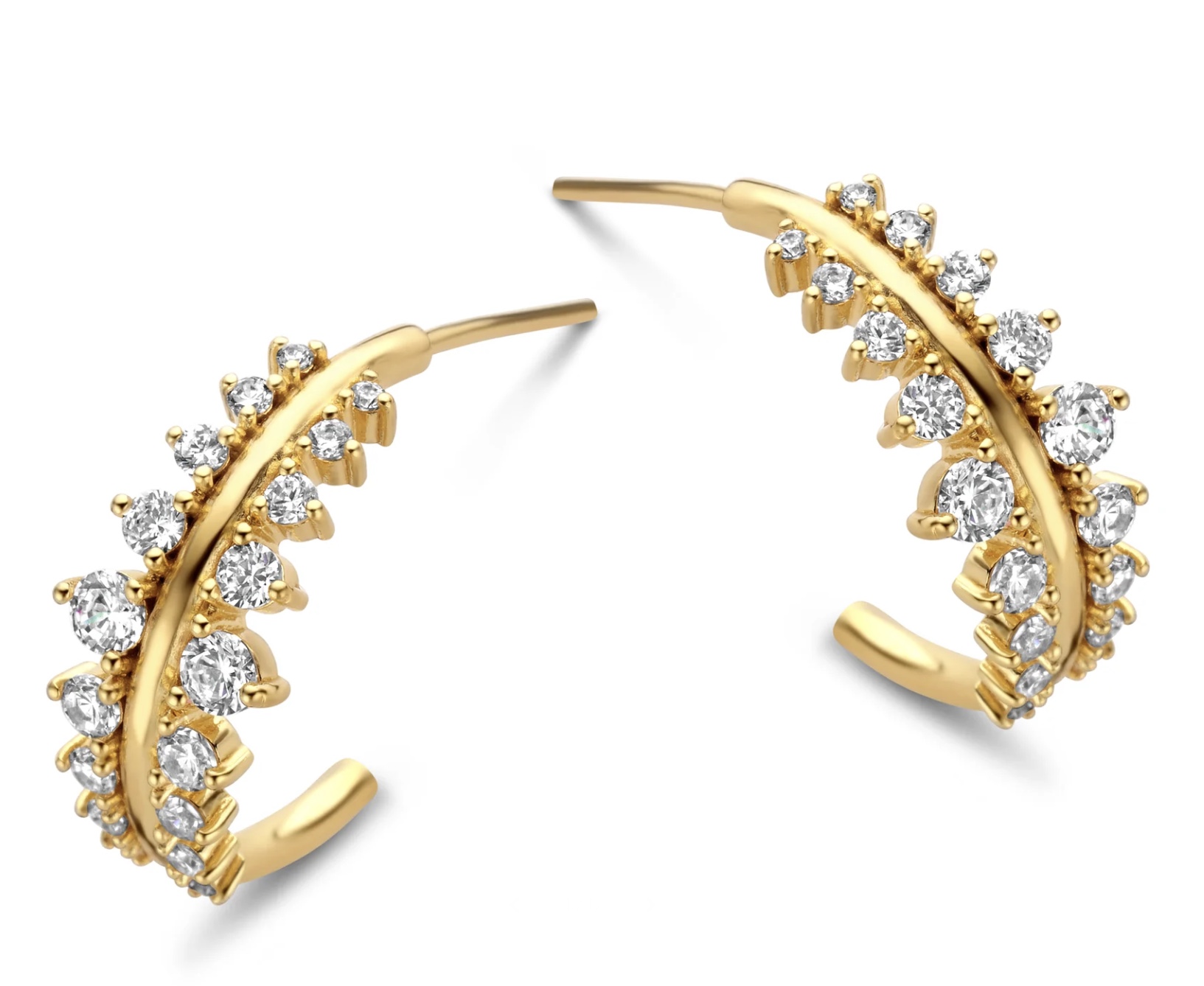 Empress øreringe i forgyldt og zirkonia. De klare zirkonia sten sidder i et varierende forløb og danner en elegant krone. Empress øreringene er til dem, der elsker creoler, men som ønsker at skille sig ud.