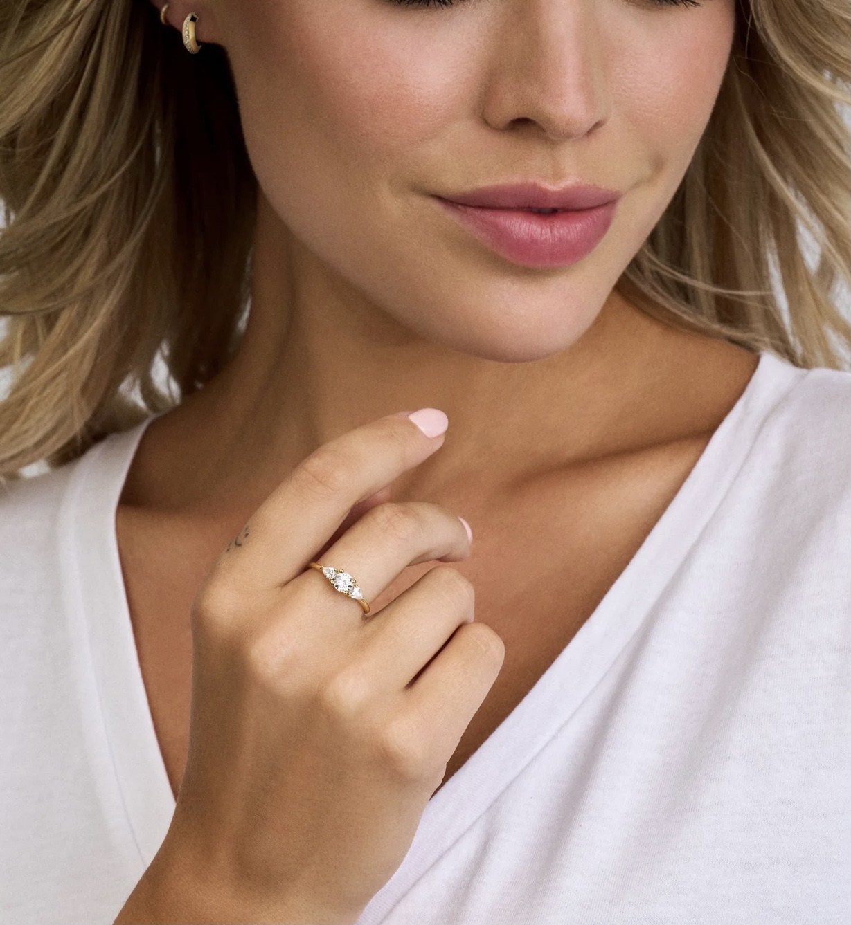 Den romantiske Palace ring er designet med to pære formede zirkonia samt en flot rund zirkonia i midten.